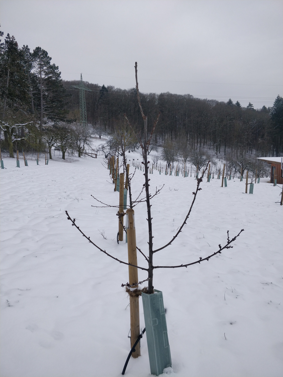 Hier seht Ihr unsere neu gepflanzten Süßkirschenbäume.