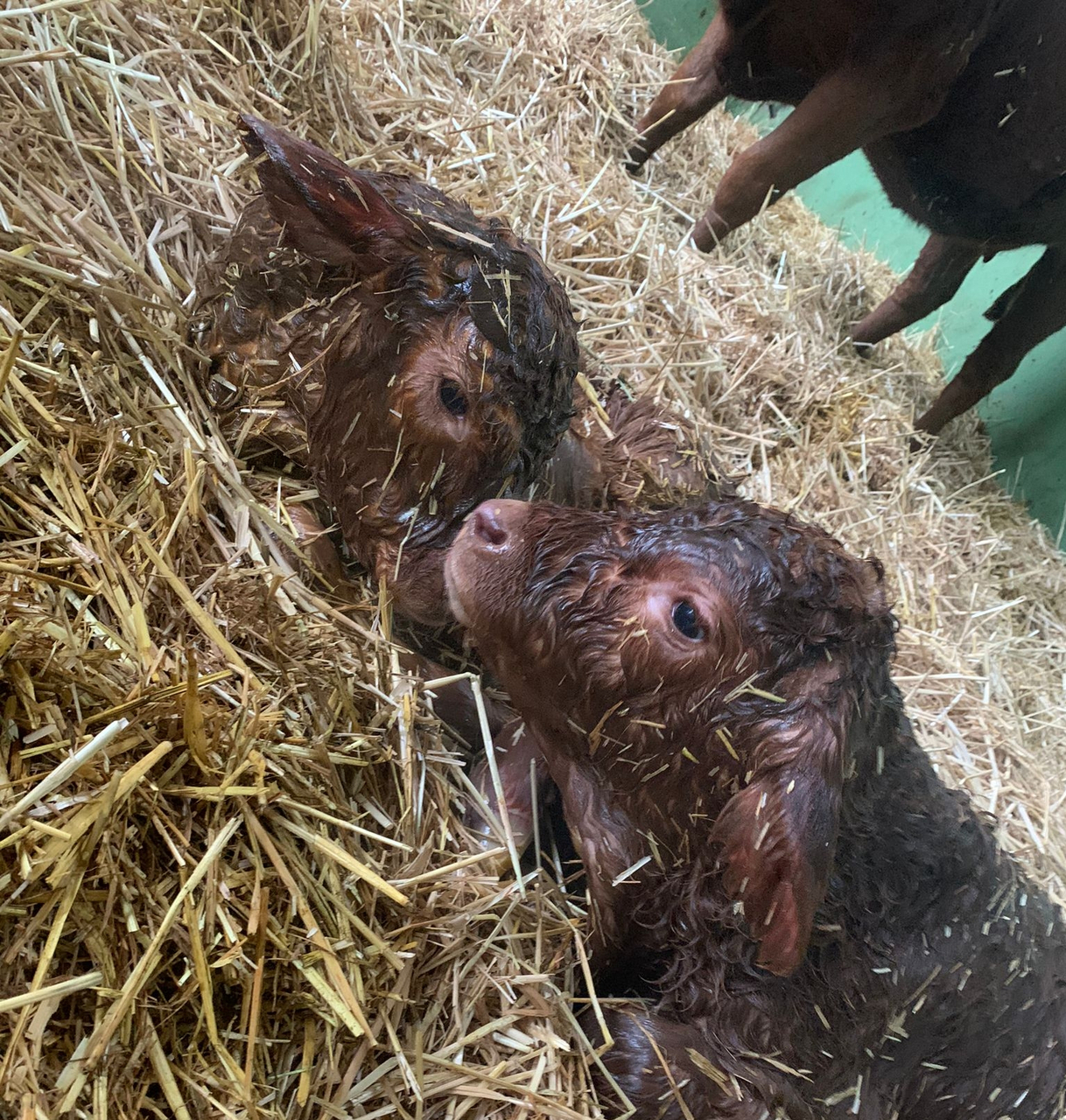 Unsere Kuh Hazel hat Zwillinge geboren. Den beiden Kälbern geht es gut. Unsere Mutterkuhherde ist immer von November bis